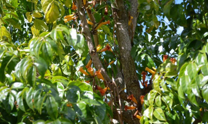 В естественной среде радермахера может вытягиваться до 30 метров. Дома она не вырастет более полутора метров. А в природе радермахера распускается ночью. По форме соцветия похожи на колокольчики оранжевых оттенков. У цветов необычный коричный аромат. В домашних условиях радермахера практически не цветет.