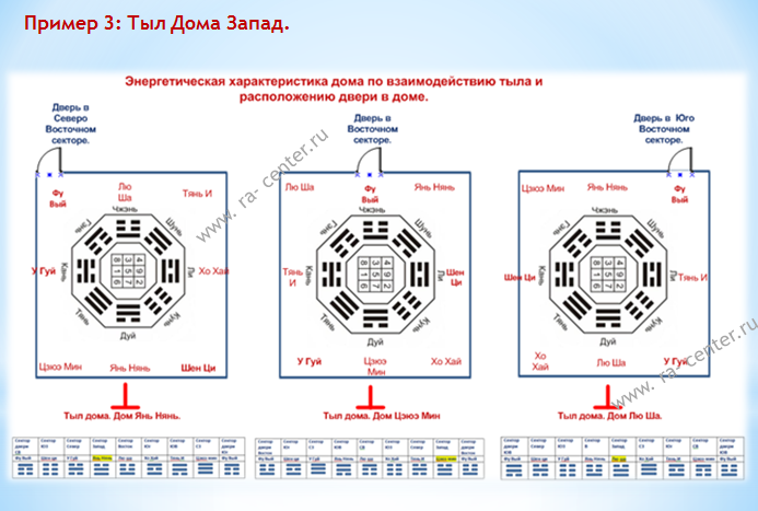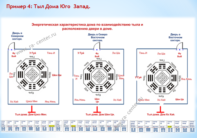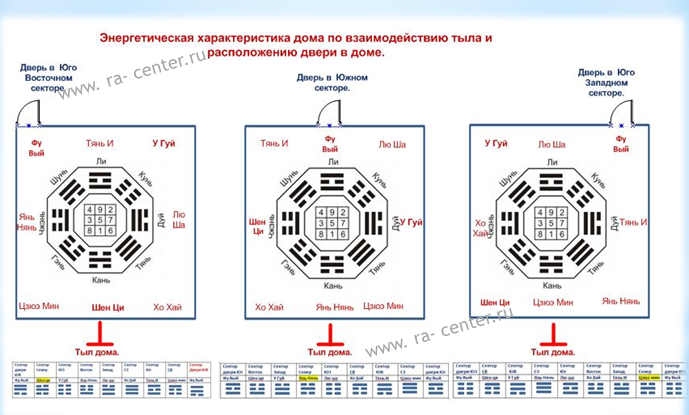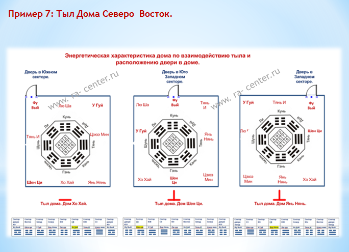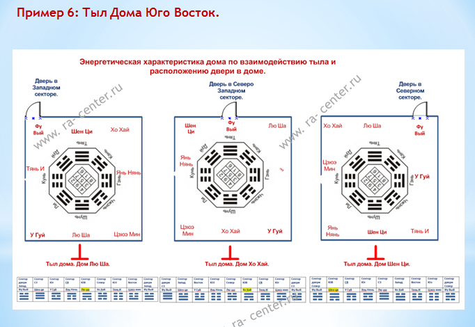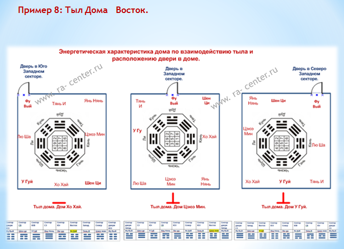 Именно взаимодействия триграмм тыла и входящей энергии позволяет сразу дать общую энергетическую характеристику дома, т.е. определить энергетику дома.