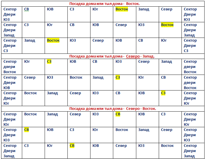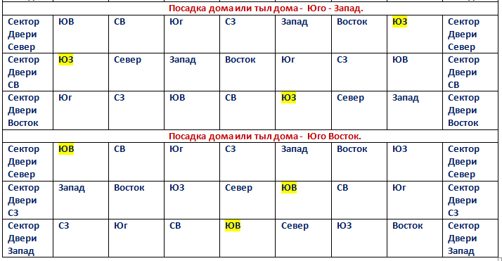 . Здесь нам важны именно сектора, а не направления входной двери.