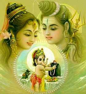 Спустя некоторое время Шива пришел к Ней, и Нанди, растерянный, не осмелился помешать своему Хозяину войти в Его собственный дом. Таким образом Парвати была застигнута при совершении своего туалета и была этим очень раздосадована. Она рассказала об этом своим служанкам, которые сказали Ей, что ни один из Ган (слуг) экскорта Шивы не мог считаться Ее слугой и подсказали Ей создать своего собственного Сына, который был бы Ей всецело предан.