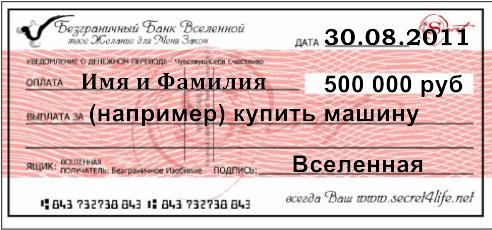 Имеет право на жизнь и еще одни вариант заполнения чека изобилия: