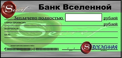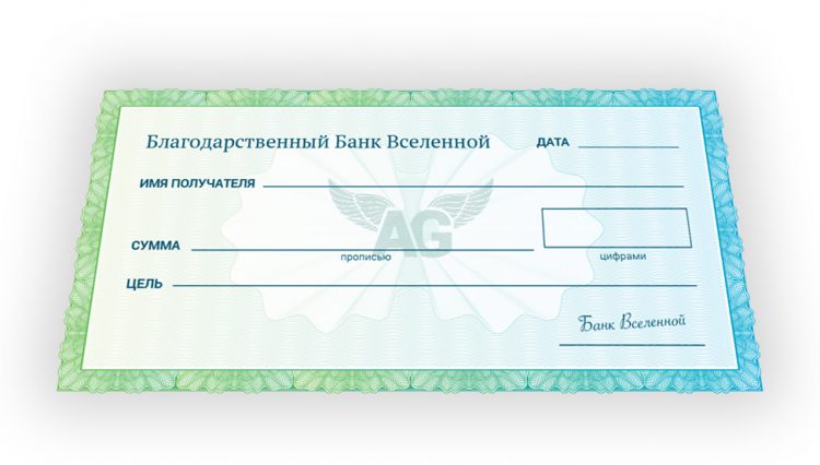 Заполняя чек изобилия Вселенной, человек заявляет о желании, документально подтверждает, что это не мимолетная прихоть и доверяет незримым банкирам найти финансы для исполнения задуманного.