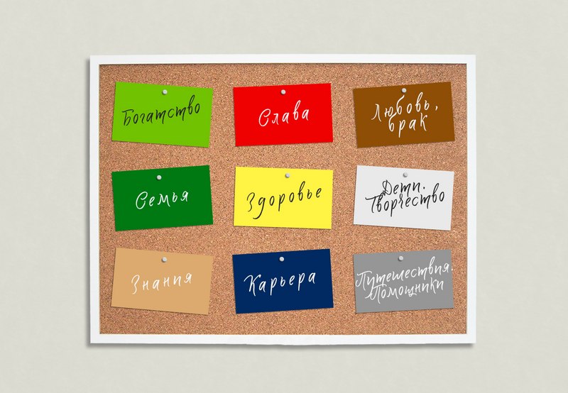Возьмите лист ватмана, расчертите на зоны, окрашенные в разные цвета. Важно! Все сектора должны быть одинаковыми по размеру. В них вы будете размещать фото или картинки с изображением вашей мечты. Можно наклеить несколько фотографий в каждом секторе, главное, чтобы изображение вам нравилось и соответствовало вашему представлению о мечте. Визуализация часто работает предельно конкретно, и вы получите именно то, что было на картинке. Поэтому если хотите двухэтажный дом, прикрепляйте его изображение, а не фото красивого интерьера квартиры. Спортивное авто? Ставьте фото спорткара, а не просто снимок иномарки, который первым попался в журнале. Очень важно верить, что спорткар действительно «прикатит» в вашу жизнь, даже если сейчас вам кажется, что это нереально. Для Вселенной нет слово «невозможно». Есть только сила мысли.