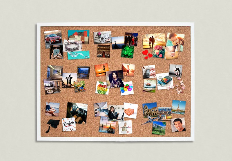 Картинки я предлагаю выбирать в интернете и печатать их на фотобумаге, а не вырезать из журналов. Смотрится очень аккуратно и красиво, есть возможность подогнать все картинки под один масштаб, а также выбрать из всего многообразия именно то, что подходит и находит отклик внутри вас.