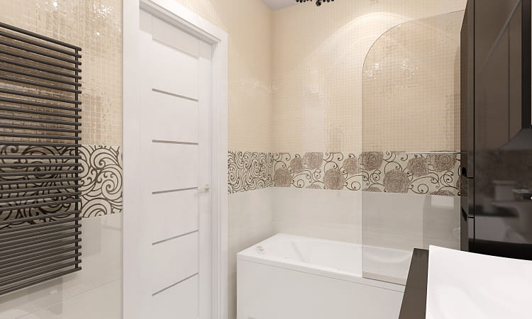 - для улучшения стиля ванной комнаты и придания ей особой атмосферы можно разбавить стены яркими вставками или украсить миниатюрными бордюрами;