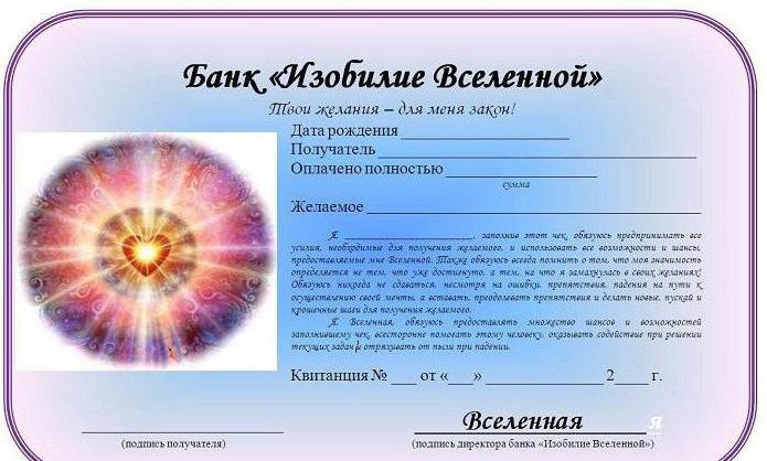 Как правильно заполнять чек Изобилия Вселенной?