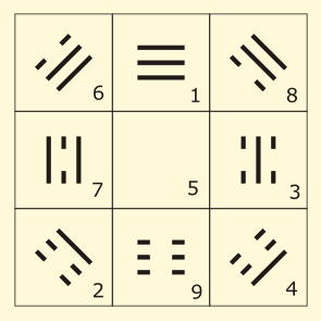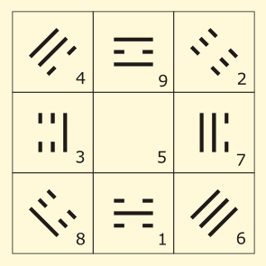 Квадрат Ло-шу – это магический квадрат 3 x 3, играющий важнейшую роль в китайской метафизике, в том числе, в прорицательных системах и фэн-шуй.