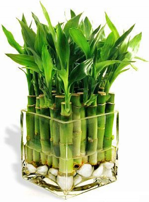 Бамбук. Растение хорошо поглощает отрицательную энергию. В учении фэн шуй считается, что отрицательная энергия при прохождении сквозь полости бамбука шизменяется на положительную. Растение рекомендуется держать в напольной и широкой вазе в углу комнаты.