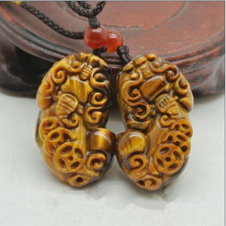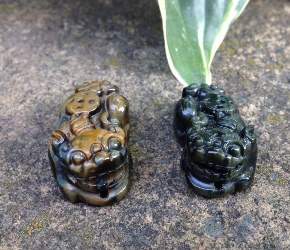 Фигурки выполнены из натурального глазкового кварца. Этот камень, являясь сам по себе одним из мощнейших оберегов, значительно усиливает защитные свойства талисмана. Эти фигурки можно использовать и в качестве оригинальных кулонов-оберегов. Что китайцы и делают. Например вот так: