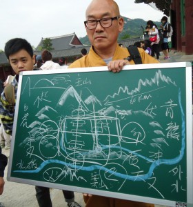 На этот раз изучение фэн-шуй Кореи проходил с участием известного Мастера сань хе Кореи по имени Сукеонхва. Он монах, настоятель храма, профессор университета в Сеуле, где преподает фэн-шуй студентам, основатель Ассоциации Буддистов Кореи, Советник Министра по вопросам метафизики.