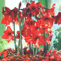 Амариллис (гиппеаструм) исключительно эффектное в цветении растение. Луковицы при посадке погружают в почву на одну треть высоты, умеренно поливают, пока не появится цветочная стрелка. Поливку постепенно усиливают, используя теплую (около 40°) воду. Самое роскошное цветение бывает при начале вегетации не раньше марта. В период цветения растение лучше содержать при более прохладной температуре. После окончания цветения луковицы можно пересадить в свежую питательную землю; летом перенести растения на балкон, в сад и умеренно подкармливать. Осень для гиппеаструма – период покоя; полив прекращают, растение сохраняют в помещении с температурой 8-10°.