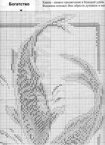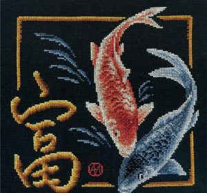 Он изображен вместе с двумя рыбками. Если его правильно вышить крестиком и расположить в нужном месте, то он поможет увеличению роста прибыли в денежном эквиваленте. С его помощью можно начинать любые финансовые дела. Этот знак направит всю энергию в удачу, которая поспособствует обогащению ее владельца. Даже, если вы не стремитесь к огромному богатству, эта китайская буква поможет получить еще и такое необходимое умиротворение.